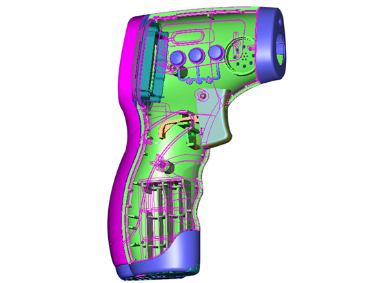 通過三坐標測量機對塑膠產(chǎn)品外殼進行裝配面輪廓度檢測及塑膠扣位的尺寸檢測,確保體溫槍結(jié)構(gòu)完整,尺寸、外觀符合圖紙要求.
