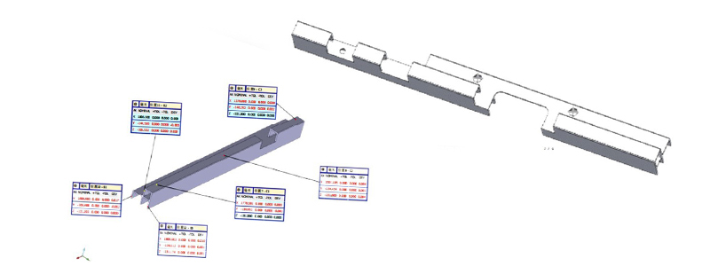 檢測對象:① 電池托盤框架結構件:測量安裝孔位、焊接位、卡槽等尺寸及位置度等