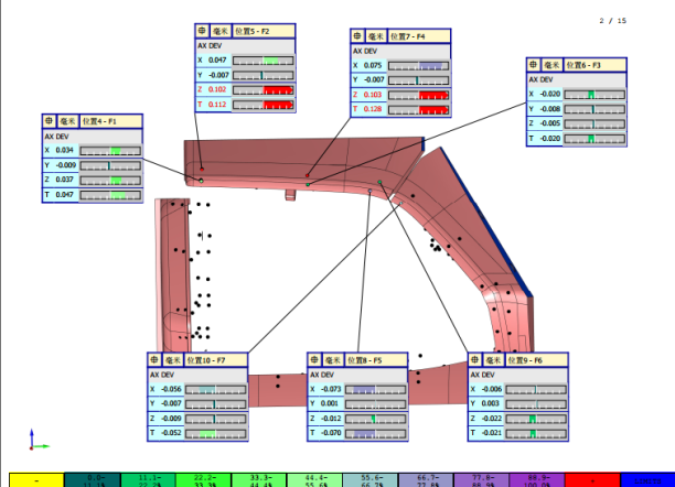 一般將檢具的基準孔坐標放在首頁,然后是按照定位孔,齊平面,間隙面的順序依次分頁顯示。