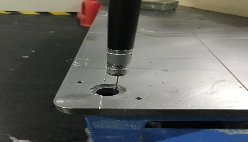 初調:首先使用初調孔調好基準孔位置,然后手動取點與數(shù)模對比,借助三坐標讀數(shù)觀察數(shù)據(jù)變化,進行位置調整,初調一般調到公差附近越小越好。