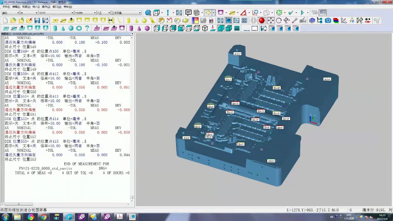 在模具生產加工過程中,模具的型芯型腔與導柱導套的尺寸如果出現偏差,則無法匹配;通過思瑞三坐標測量機找出偏差值以方便糾正,并且三坐標測量機可以應用模具3D數模的導入,將成品模具與數模上的定位、尺寸、相關的形位公差、曲線、曲面進行測量比對,通過圖形化報告直觀、清晰地反映模具質量,從而形成完整的模具成品檢測報告。