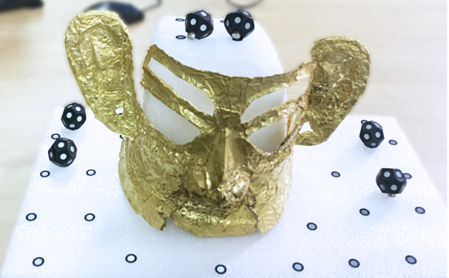 ▲純藍光技術,針對薄如蟬翼的金面罩,也可輕松獲取高亮表面的高精度點云數(shù)據(jù)。