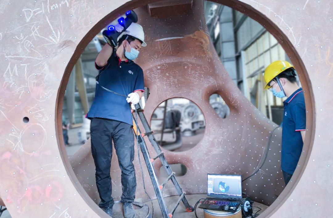 客戶是一家生產風力發電設備相關部件的企業,此次掃描檢測的是一個大型風機頭鑄件(直徑約3m),要求數據采集完整(包括底部),精度±3mm,主要用于尺寸測量、輸出檢測報告、保存數據以及更好地對接客戶。