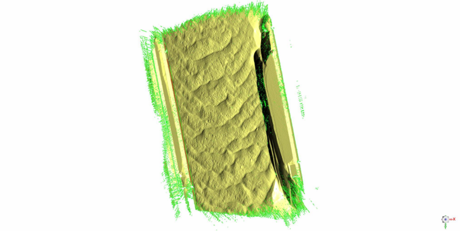 ◎不到1分鐘即采集完研究區(qū)域的三維數(shù)據(jù),實(shí)現(xiàn)對(duì)真實(shí)微地貌的三維重建;◎?qū)呙钄?shù)據(jù)導(dǎo)入Geomagic Control軟件分析高/低點(diǎn)的變化情況,表面波浪起伏清晰可見,翔實(shí)的數(shù)據(jù)為微地貌相關(guān)研究工作提供了重要支撐。