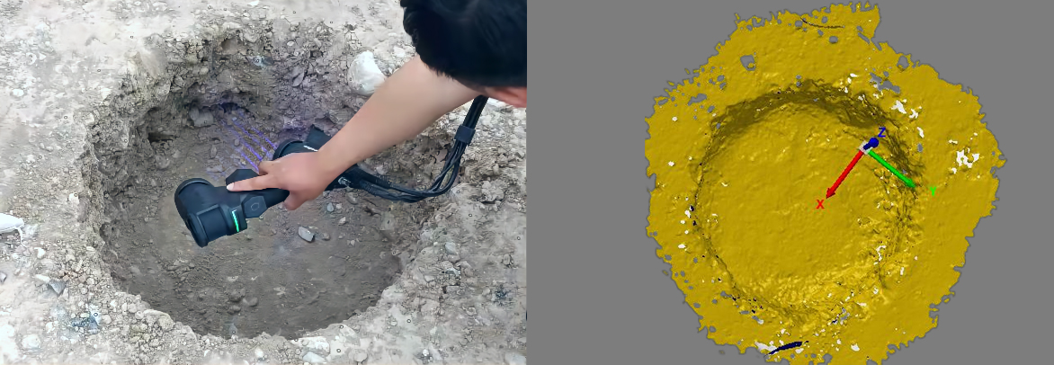 ◎使用MarvelScan掃描在機(jī)場地基上挖出的土坑,以高達(dá)135萬次測量/秒的速率,可以一次性精準(zhǔn)、迅速完成不規(guī)則土坑的三維數(shù)據(jù)采集,且數(shù)據(jù)方便傳輸與保存,具有永久可追溯性;