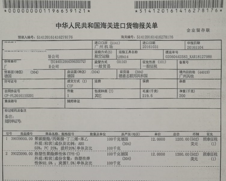 申報要素:1:品名;2:外觀;3:成分含量;4:單體單元的種類和比例;5:品牌;6:型號;7:簽約日期;8:用途;9:是否為廢塑料(必須申報為”是廢塑料”或”非廢塑料”);10:若是廢塑料,請報清來源;