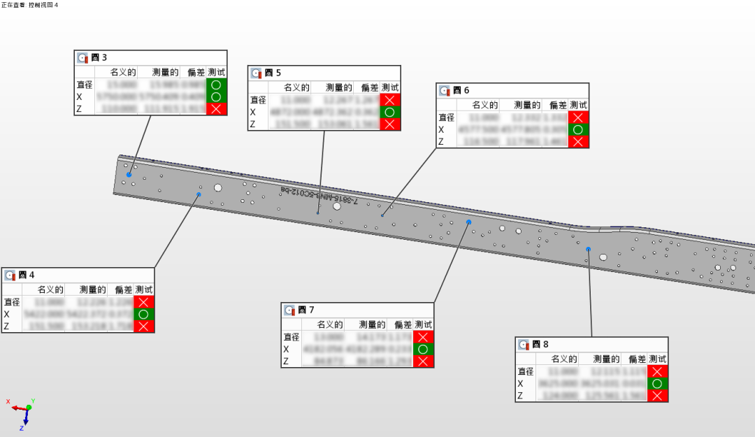 本次掃描4件車架,采集數據共計耗時45min,檢測耗時30min,實現了車架縱梁檢測過程的穩定性和高效性。后續還可升級自動化檢測方案,極大地滿足大批量、多品種的生產和檢測需求。